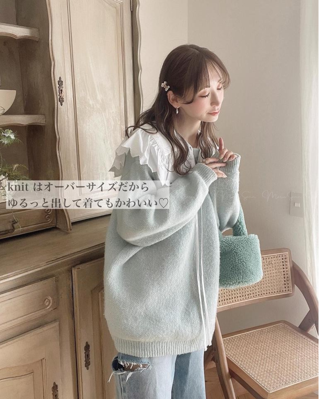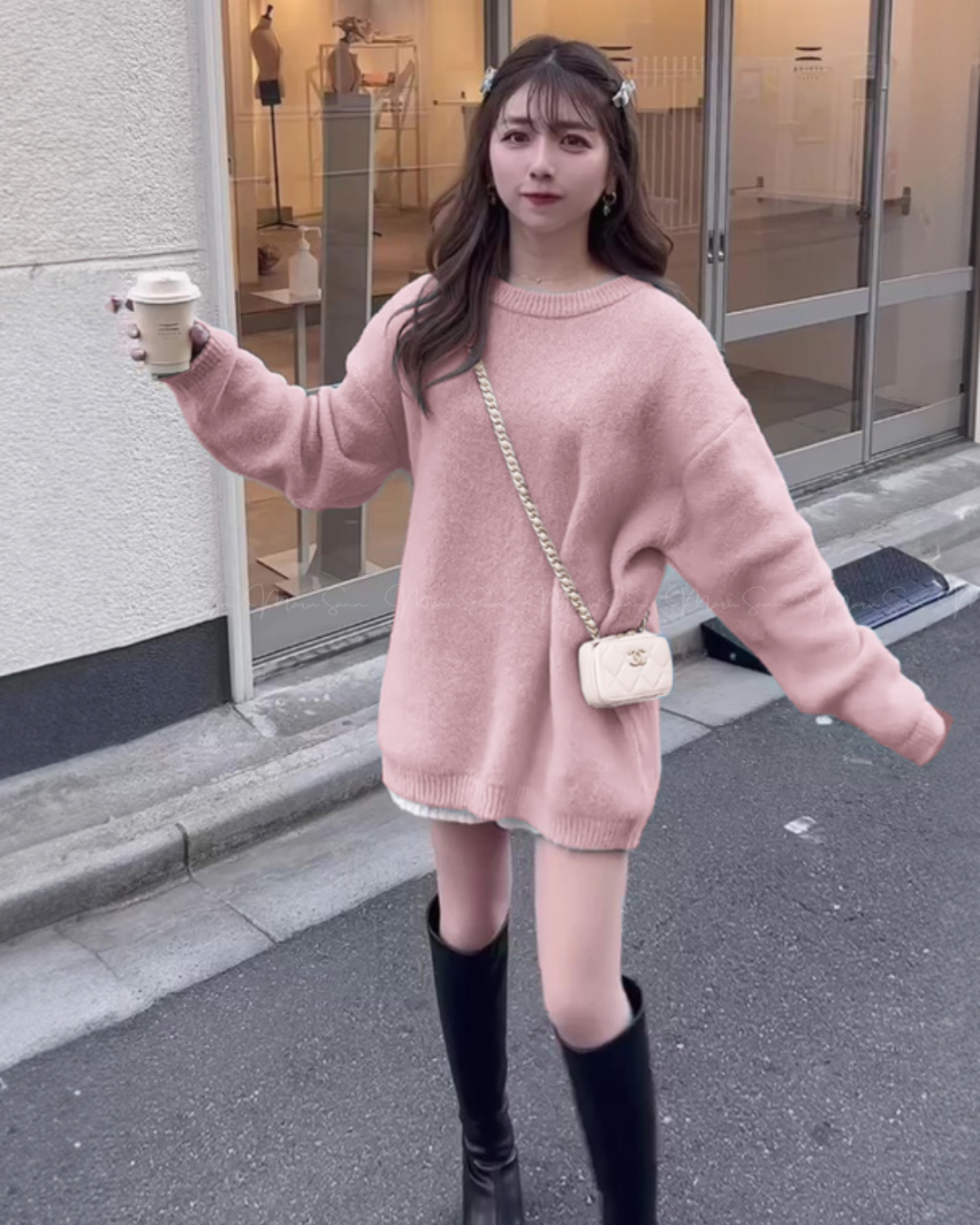 🇯🇵 JAPAN ♥ 粉嫩色男友風馬海毛寬鬆長版針織毛衣 🔎 ɪᴛᴇᴍ ɴᴏ.: SS-jg12380