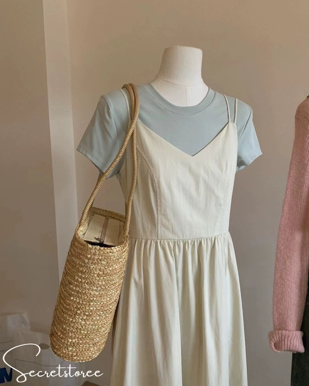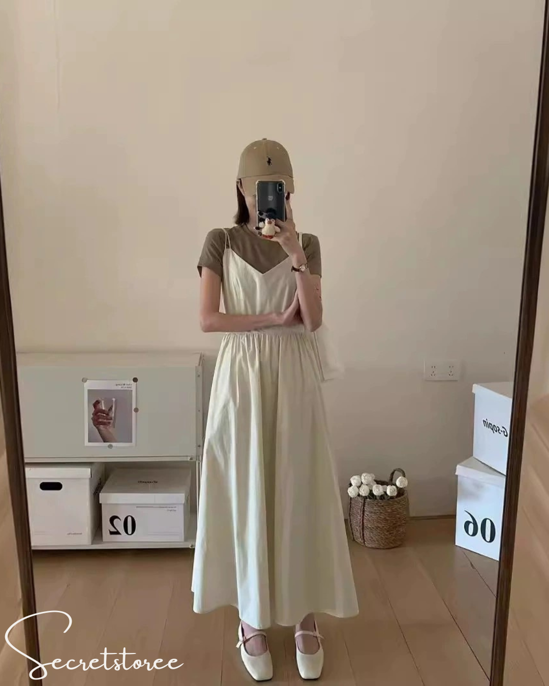 🇰🇷韓國|可愛淨色雙帶百搭連身裙(2色入)
