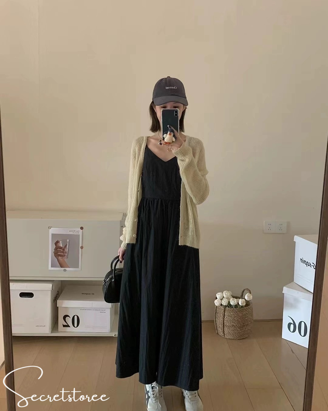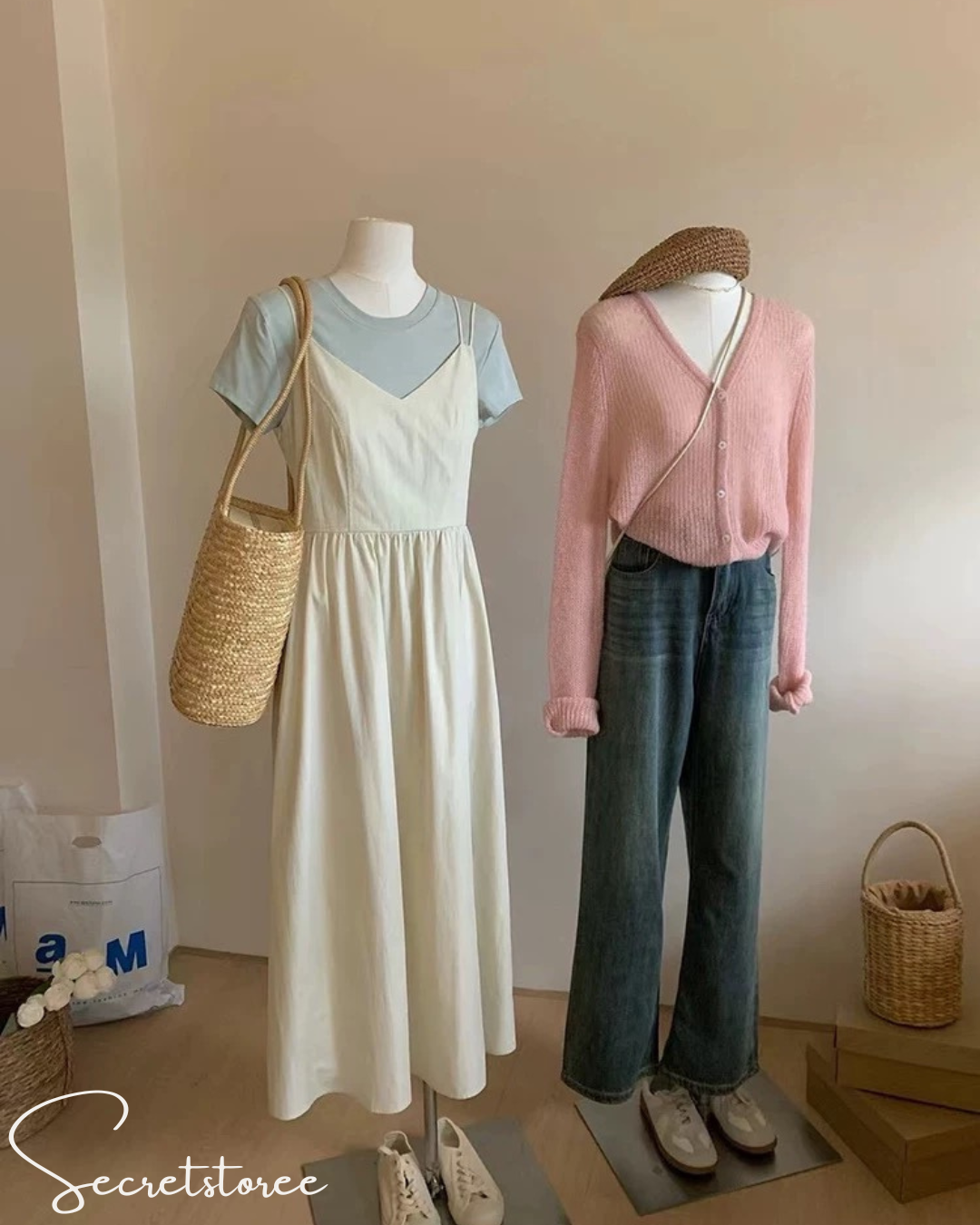 🇰🇷韓國|可愛淨色雙帶百搭連身裙(2色入) ★ 產品編號🔎 SS-kb1b041700