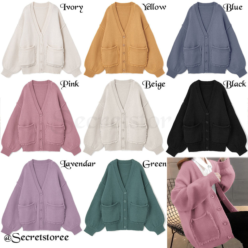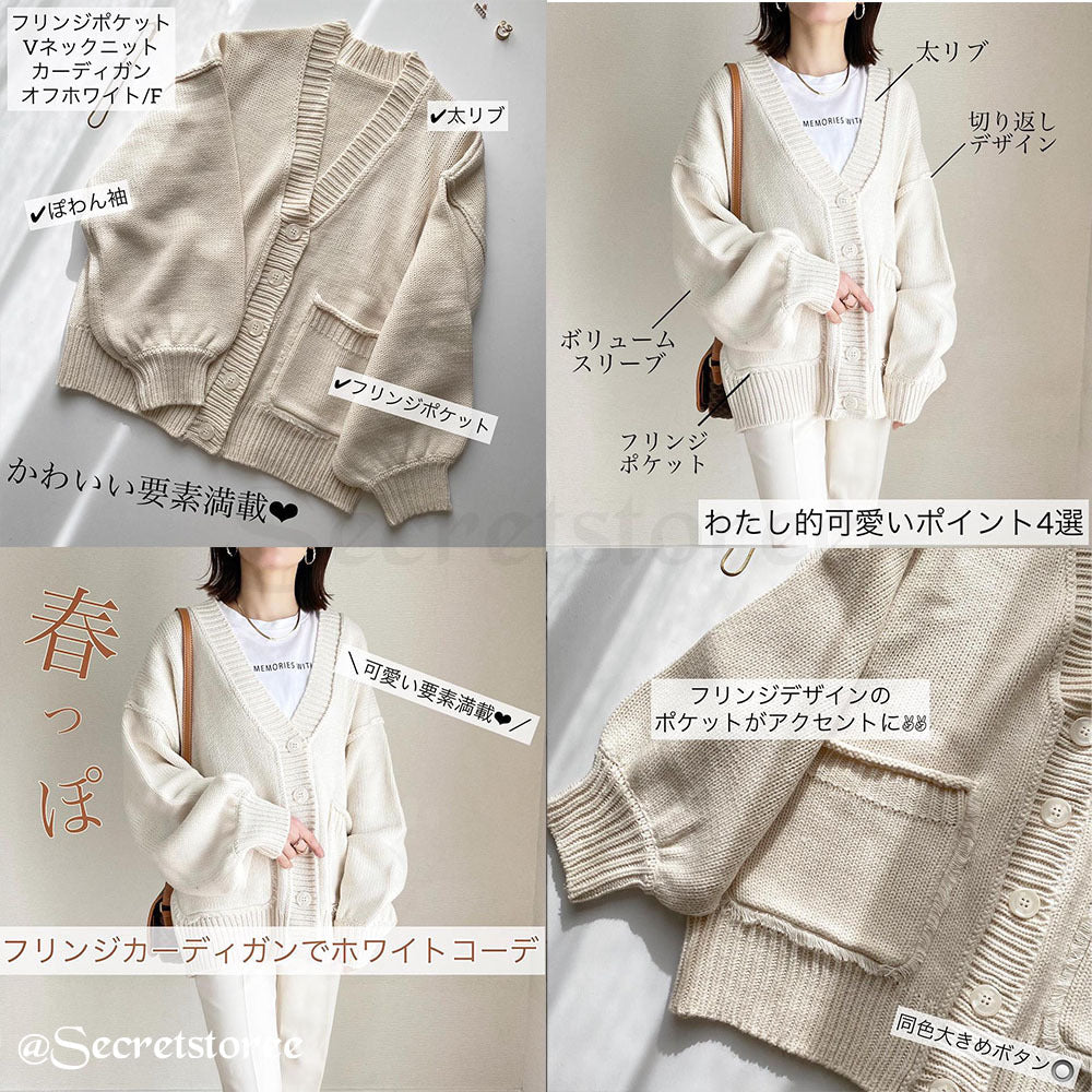 🇯🇵日本 │ 百搭流蘇口袋針織外套(8色入)[San955] ✓ 預 訂 ( *疫情期間預訂貨品納期約10-21日*) ── 搶眼的流蘇袋設計 寬鬆的袖子營造出可愛感 利落的V領剪裁盡顯女人味。 ▪️SIZE:FREE 長度:63cm 寬度:60cm 肩寬:60cm 袖長:51cm ▪️COLOUR: 黑/藍/黃/粉/綠/象牙白/薰衣草紫/杏白 -