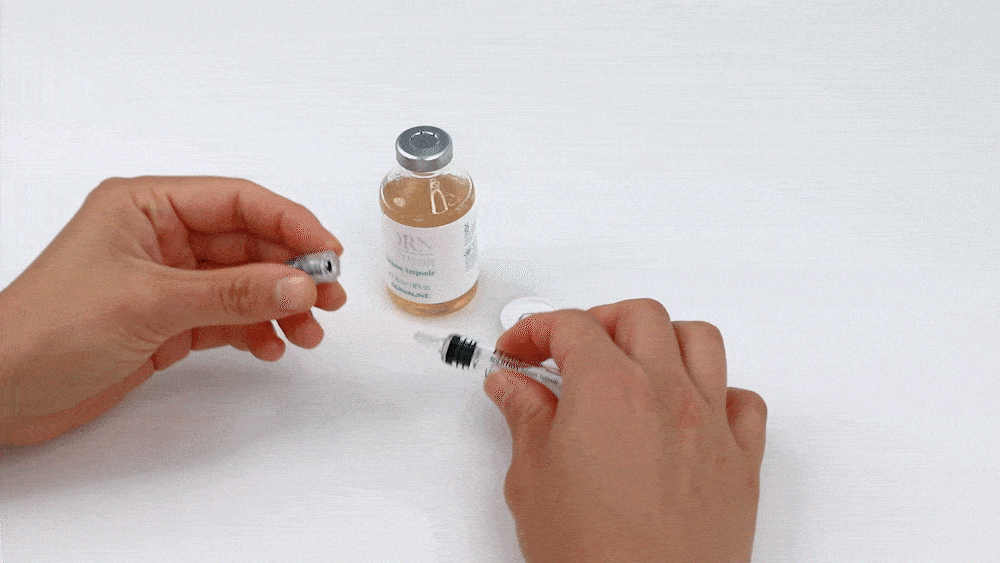 2. Remove the applicator cap and insert it into the rubber seal on the ampoule.