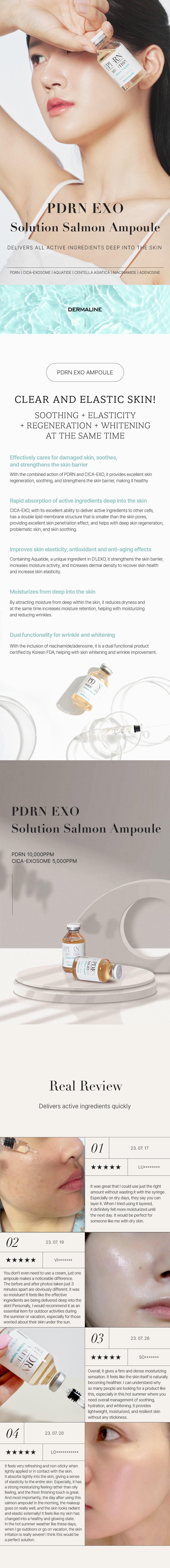 Harness the power of nature with PDRN EXO Solution Salmon Ampoule. This innovative formula combines pdrn and cica-exosome to deliver maximum hydration and anti-aging benefits. Say goodbye to dull, dry skin and hello to a radiant, youthful complexion.